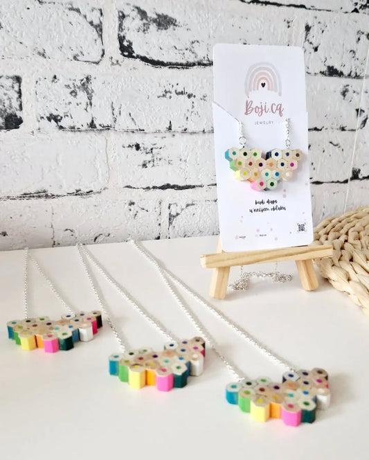 Dobrodošli u naš šareni svijet ručno izrađenog nakita od drvenih bojica! Svaki komad je unikatan i izrađen s ljubavlju, koristeći visokokvalitetne i reciklirane drvene bojice. Oživite boje djetinjstva i istaknite se s našim originalnim nakitom. Razgledajte našu ponudu i pronađite savršen komad za sebe ili svoje najdraže!